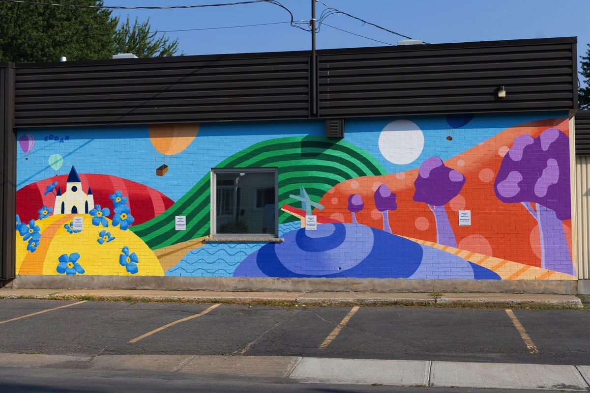 Edgar Vachon-Desautels est un artiste muraliste dont le travail fusionne réalisme et abstraction pour offrir une aventure visuelle immersive. À travers des couleurs vives et des formes figuratives simplifiées, il évoque la joie, l’enfance et l’imaginaire. Ses œuvres, accessibles et ludiques, visent à créer des liens entre les lieux et les passants, à égayer l’espace urbain et à rappeler l’importance de garder un cœur d’enfant.