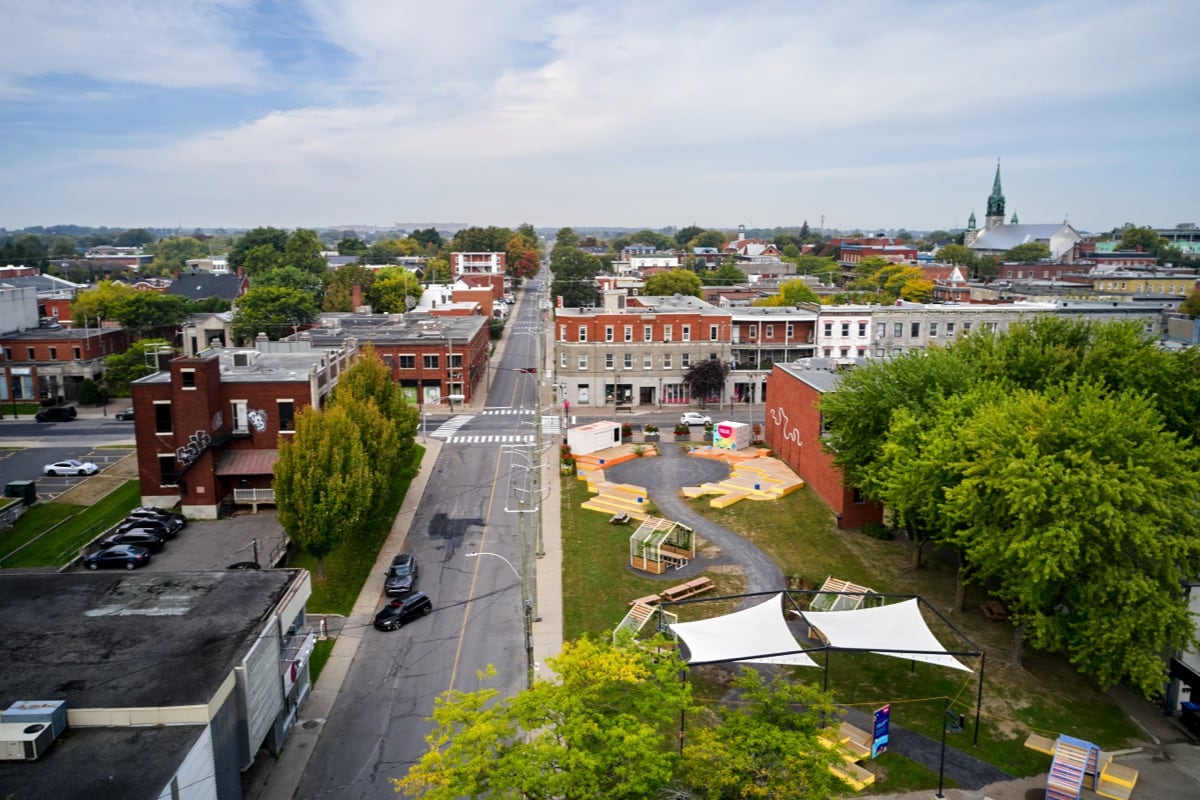 - Signature distinctive pour le Vieux-Saint-Jean avec l’aménagement de terrasses, l’ajout de mobilier urbain et l’intégration de pavé de béton blanc.
