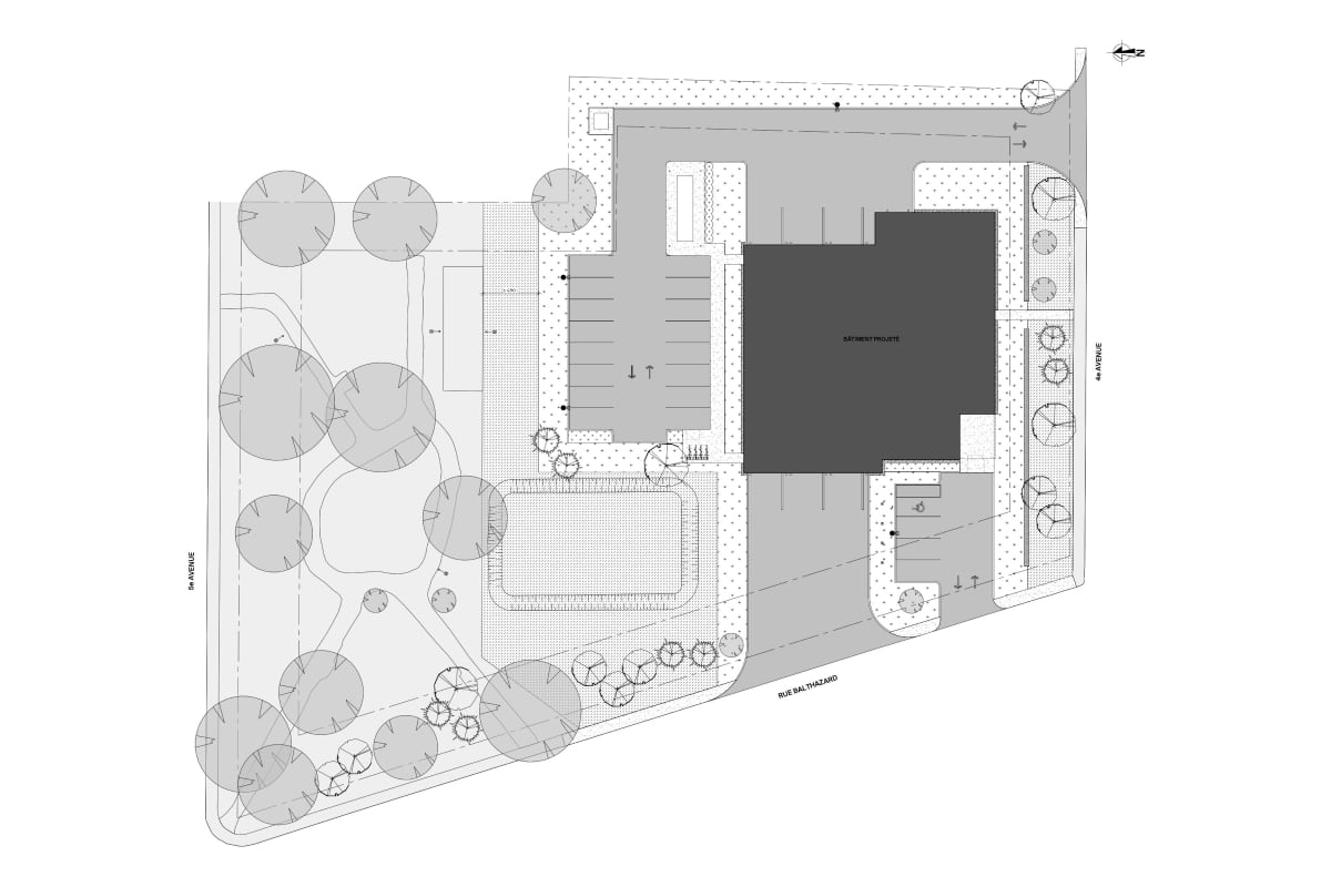 - Le réaménagement du site permettra l’ajout d’un bassin de rétention ainsi que la plantation de plusieurs arbres et arbustes.