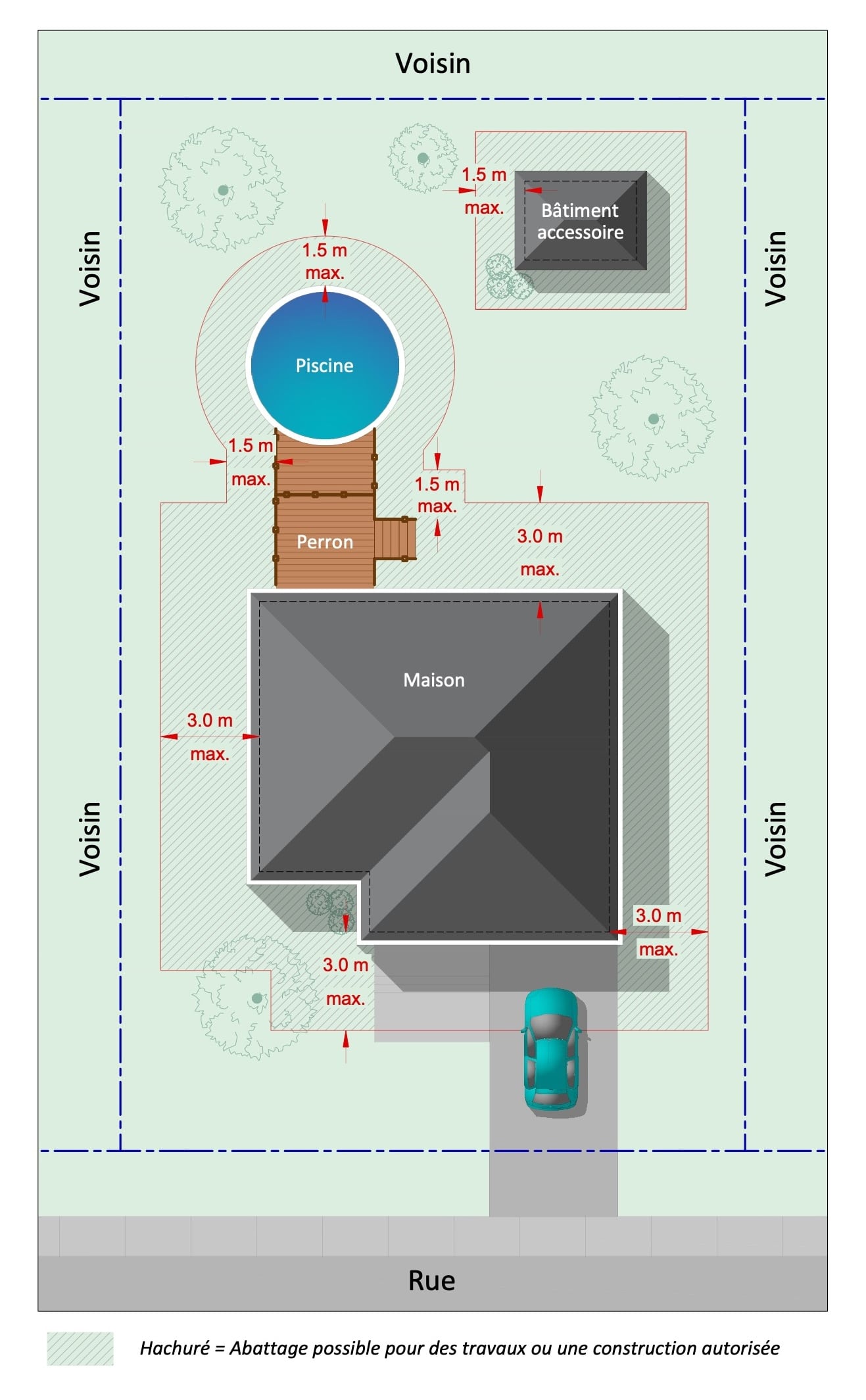 - L’abattage est requis pour la réalisation d’un projet conforme et autorisé (uniquement dans les zones strictement nécessaires aux travaux)